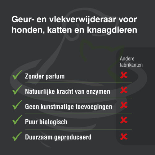 Erg fijn product. We hebben tesamen met de UF2000 het probleem van onze kat met niergruis kunnen oplossen. Houten vloer, stoffen bank en kleding. Niets was bestand tegen dit product. De geur én de vlekken waren verdwenen. Met andere woorden: ik raad u zeker aan dit product te gebruiken. En we hebben toch wel het een en ander aan andere merken geprobeerd.
